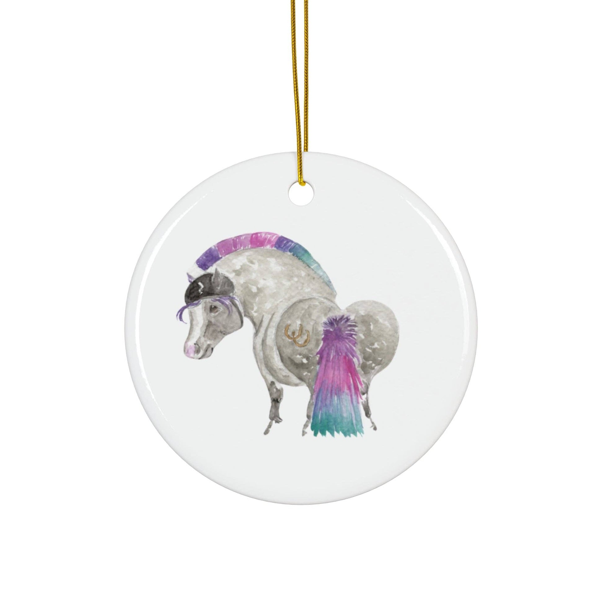 Adorable Ponies Holiday Ornament with artist's original watercolor paintings of Adorable Ponies.